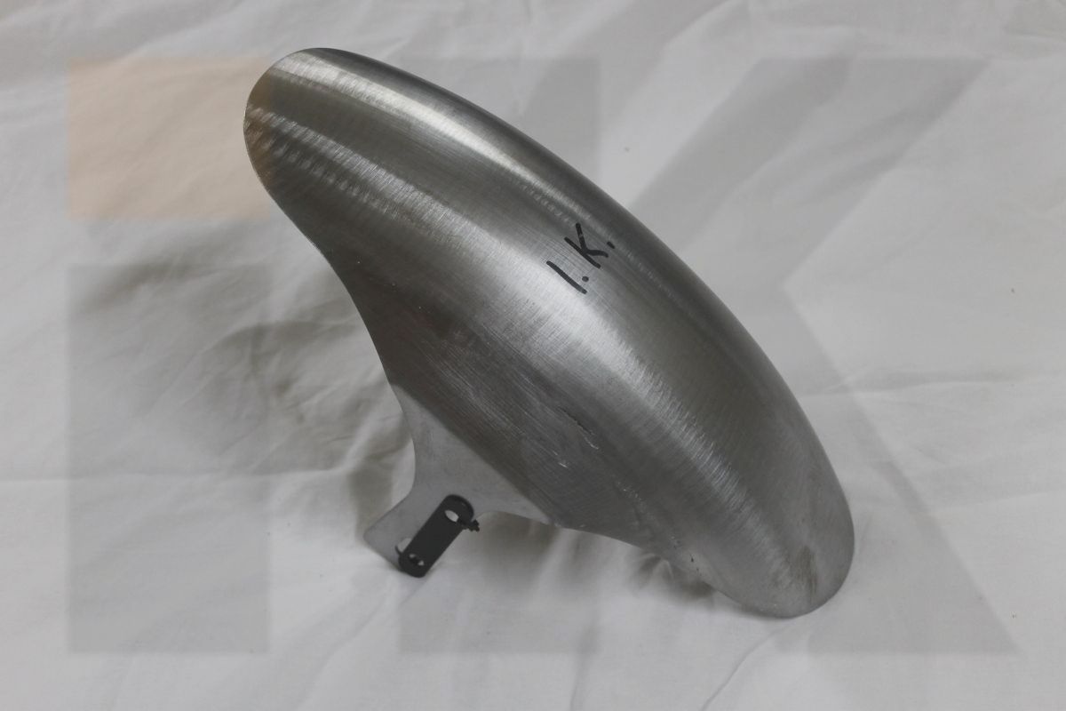 Kurzer Custom Frontfender aus Stahl unlackiert.
