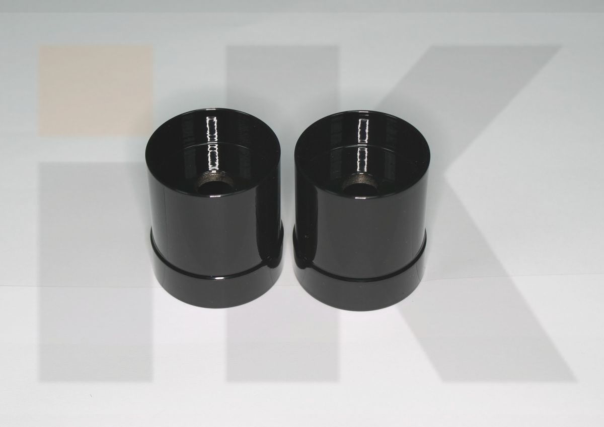 CNC-Gefertigt aus Stahl schwarz Glänzend pulverbeschichtet mit Kunstoffeinlage.