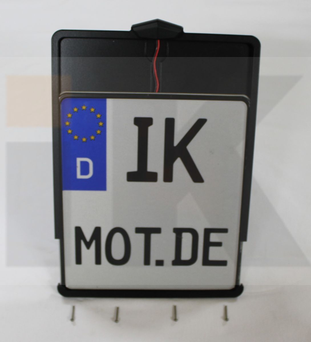 Das Kennzeichen wird von unten eingeschoben, siehe Abbildung.