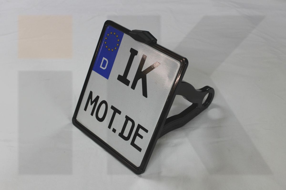 Das Kennzeichen wird von unten eingeschoben, siehe Abbildung.