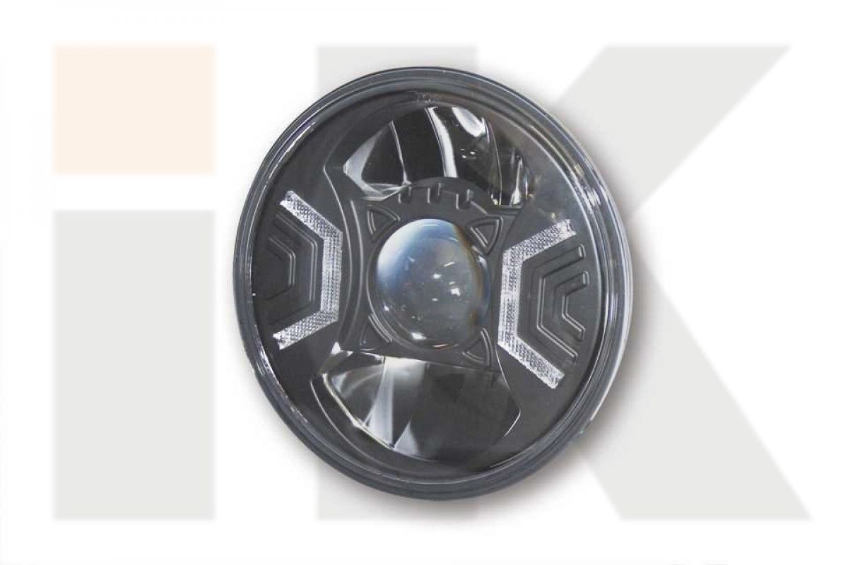 HIGHSIDER TM LED Hauptscheinwerfereinsatz TYP 2, rund mit schwarzem Reflektor, 7 Zoll, Fern-, Abblend-, und Standlicht Funktion E-geprüft. Diesen Einsatz gibt es auch mit Gehäuse. Art.Nr. 223-xxx, 223-1xxx, 223-xxx und 223-xxx. Abmessungen: Durchmesser außen = 176 mm, Durchmesser Glas = 165 mm, Tiefe ges. = 103 mm, Stromaufnahme bei 12,5 Volt DC Abblendlicht: nur xx Ampere (ca.xx Watt). Fernlicht: nur xx Ampere (ca. xx Watt).